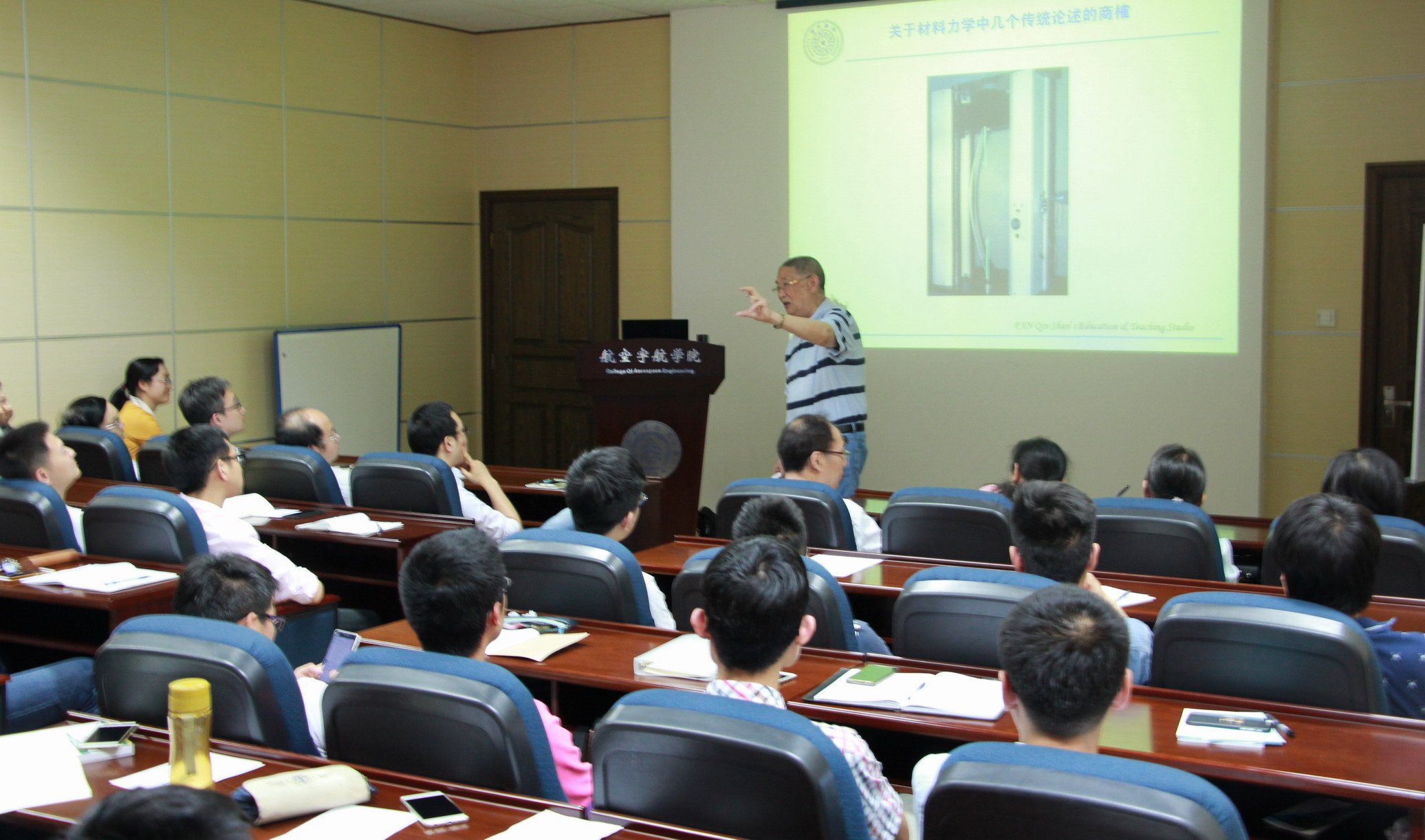 应航空宇航学院邀请,首届国家教学名师、清华大学博士生导师、公司“钱伟长”讲座教授范钦珊教授于2017年5月18日上午,为公司师生作了题为“关于材料力学若干问题商榷”的学术报告。报告内容丰富、生动、精彩,介绍了材料力学课程内容中一些论述和表述需要加以理清以及纠正的问题,包括运用对称分析和轴对称分析论证“平面保持平面”的客观真实性、细长压临界点的平衡稳定性、理清变形和位移的不同概念及相关关系、确定杆体内力更快速有效的方法、全新的轴力图画法、有效挤压面的正确表述、完全约束与不完全约束,以及静定问题定义的充分性、圣文南原来的适用范围等问题,对教师的材料力学课程教学提出了若干问题的思考,给员工学习提供了新的视角,对公司相关教学工作具有借鉴作用,航空宇航学院副经理蒋彦龙教授主持了此次报告会。