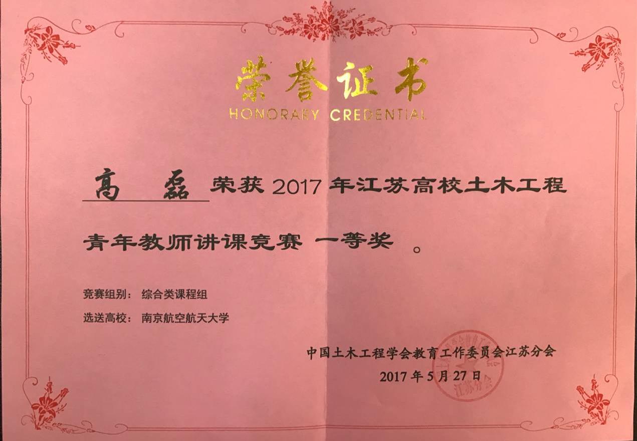 公司土木工程专业教师高磊获江苏高校土木工程青年教师讲课竞赛一等奖