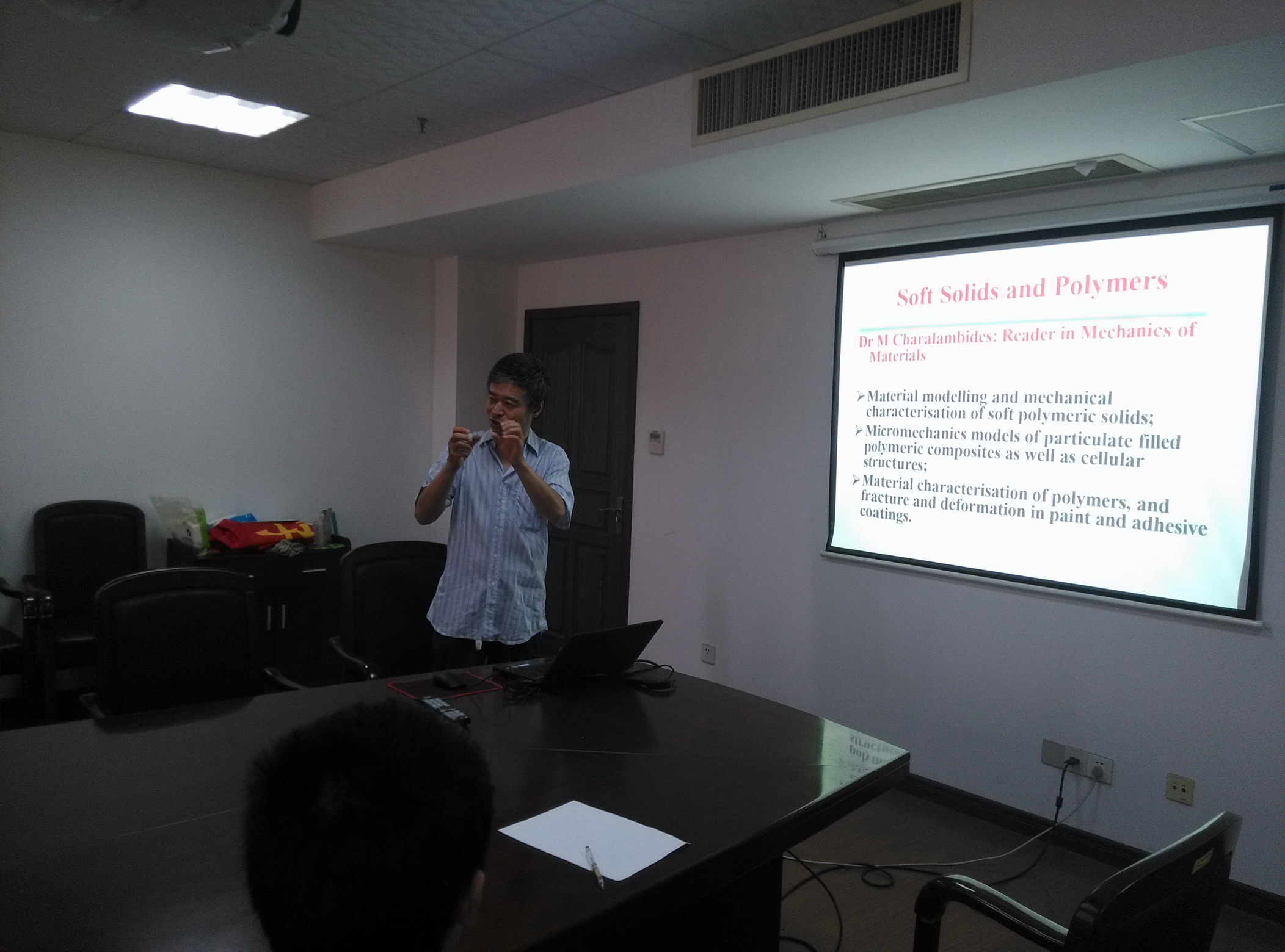 孙慧玉教授在英国期间主要围绕聚合物复合材料的力学性能开展研究,主要工作是形状记忆聚合物及其复合材料的热力学行为研究。此次访问对于公司与英国伦敦帝国学院在复合材料力学领域的合作研究,及对公司工程力学学科在智能复合材料力学研究方面的发展具有一定的促进作用。