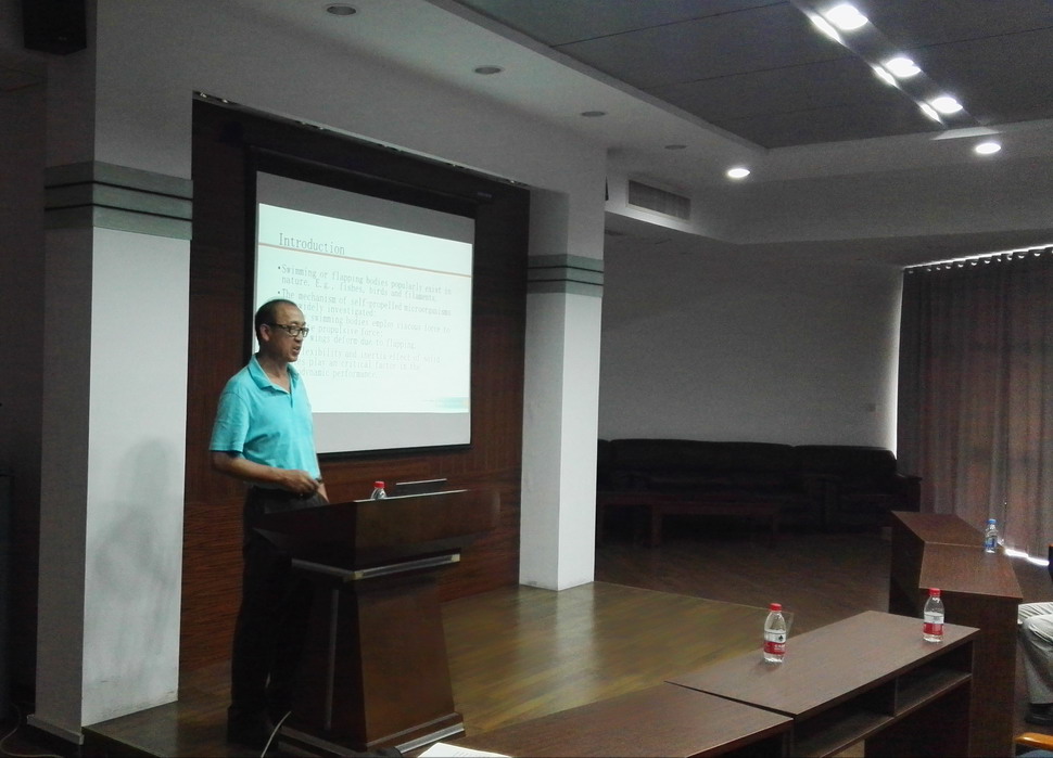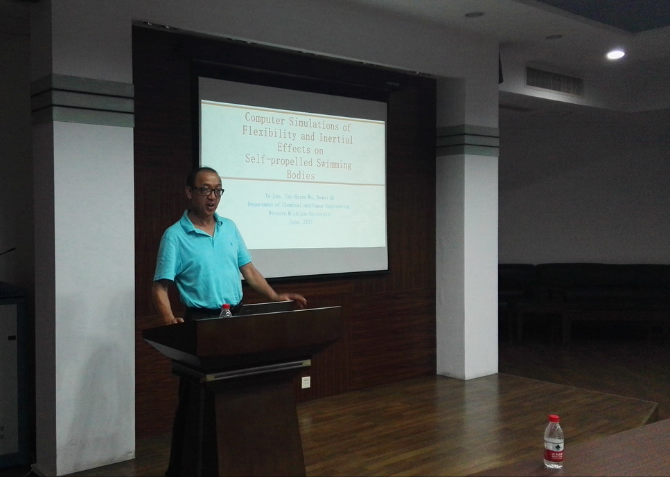 应公司航空宇航学院空气动力学系赵宁教授邀请,美国西密歇根大学化学及造纸工程系DeweiQi教授于2017年6月8日至11日访问了公司,并于6月9日为公司师生做了题为“Lattice-Boltzmann lattice-spring simulations of flexibility and inertial effects on deformation and cruising reversal of self-propelled flexible swimming bodies”及“A model of studies of the effect of bending of microvilli of Leukocyte on its adhesion”的学术报告。报告内容丰富、生动、精彩,分别介绍了格子玻尔兹曼方法和格子弹簧模型在变体自驱动和血液细胞运动问题中的应用等前沿研究工作,对公司相关科研工作具有借鉴作用。空气动力学系副主任吴杰教授主持了此次报告会。