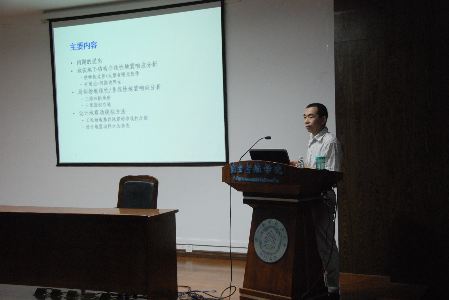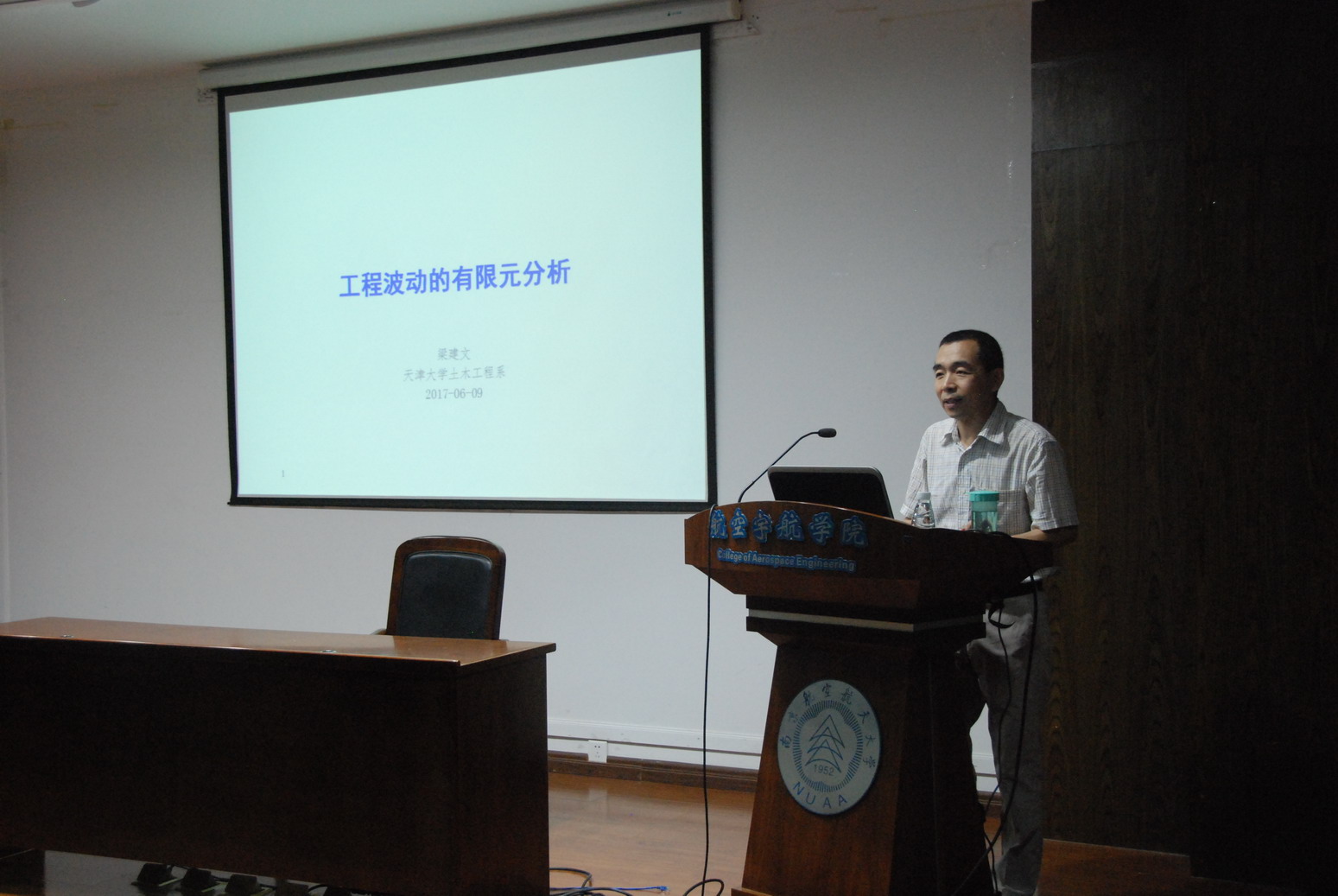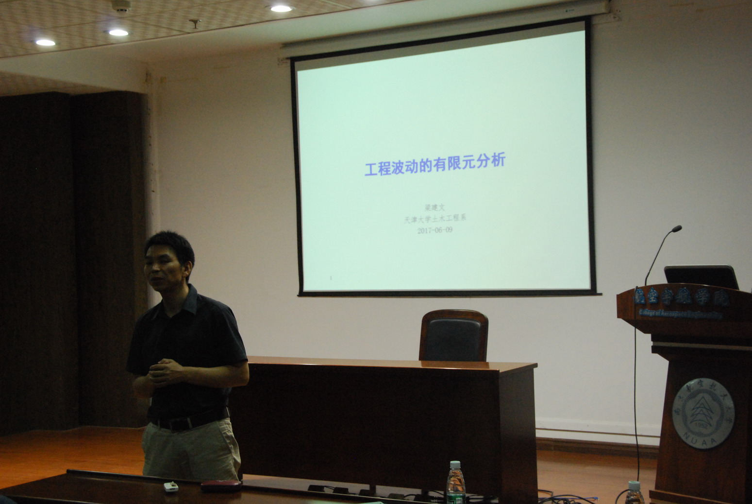 应公司航空宇航学院土木工程系陈少林教授邀请,天津大学梁建文教授于2017年6月9日访问了公司,为公司师生做了题为“工程波动的有限元分析”的学术报告。报告介绍了地铁地下结构非线性地震响应分析技术,包括基于粘弹性边界和大型有限元软件的分析技术、有限元-间接边界元耦合分析技术,以及三维凹陷地形、沉积谷地等局部场地的非线性地震响应分析技术。另外,介绍了设计地震动模拟方法,包括工程场地基岩地震动非线性反演方法、设计地震动样本补充方法等。提问环节,梁建文教授和公司师生就相关问题进行了讨论。报告内容丰富、生动、精彩,对公司相关科研工作具有借鉴作用。陈少林教授主持了此次报告会。