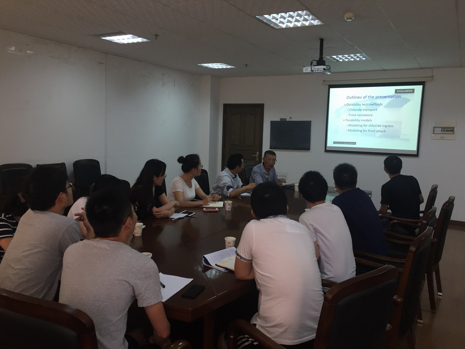 交流过程中,Luping TANG教授介绍了他负责国际材料与结构研究实验联合会(RILEM)的国际合作项目“RILEM TC-270 CIM Benchmarking Chloride Ingress Models on Real-life Case Studies”,该项目以瑞典暴露站混凝土试件的0.6~2年氯离子含量分布数据为基础,对国际混凝土学术界已经建立的氯离子扩散若干主流模型进行数据验证,并运用这些理论模型预测混凝土结构经过5年、20年和100年后的长期氯离子含量分布规律,以评判不同模型的准确性与可靠性,该项目对重大海洋混凝土结构工程的寿命设计、施工管理与耐久性评估具有重要的科学意义,是混凝土耐久性研究领域的重要国际合作项目,有很高的影响力和知名度。Luping TANG教授邀请公司将“混凝土氯离子扩散理论修正模型”参与RILEM TC-270的国际模型比对与验证活动,双方就此达成了进一步的合作意向。此外,双方还就人员交流、研究生联合培养等问题进行了交流。此次与国际著名学术大师之间的面对面交流活动,对于增强公司与瑞典查尔莫斯理工大学之间开展学术交流以及合作研究将起到积极的促进作用。