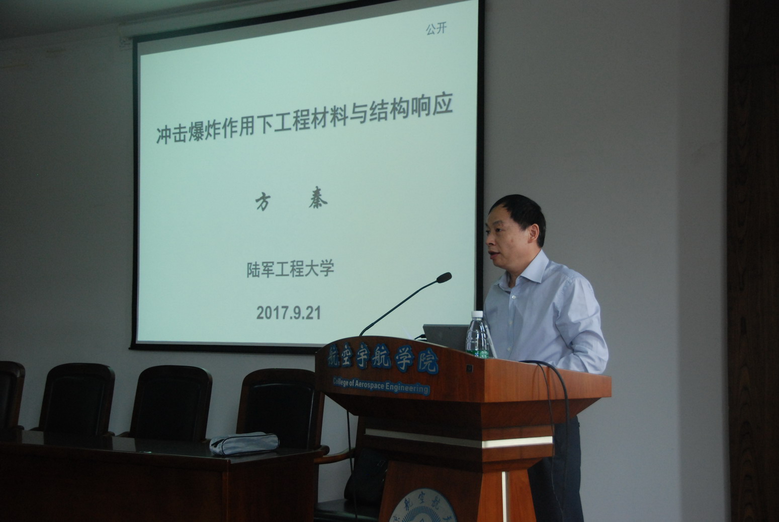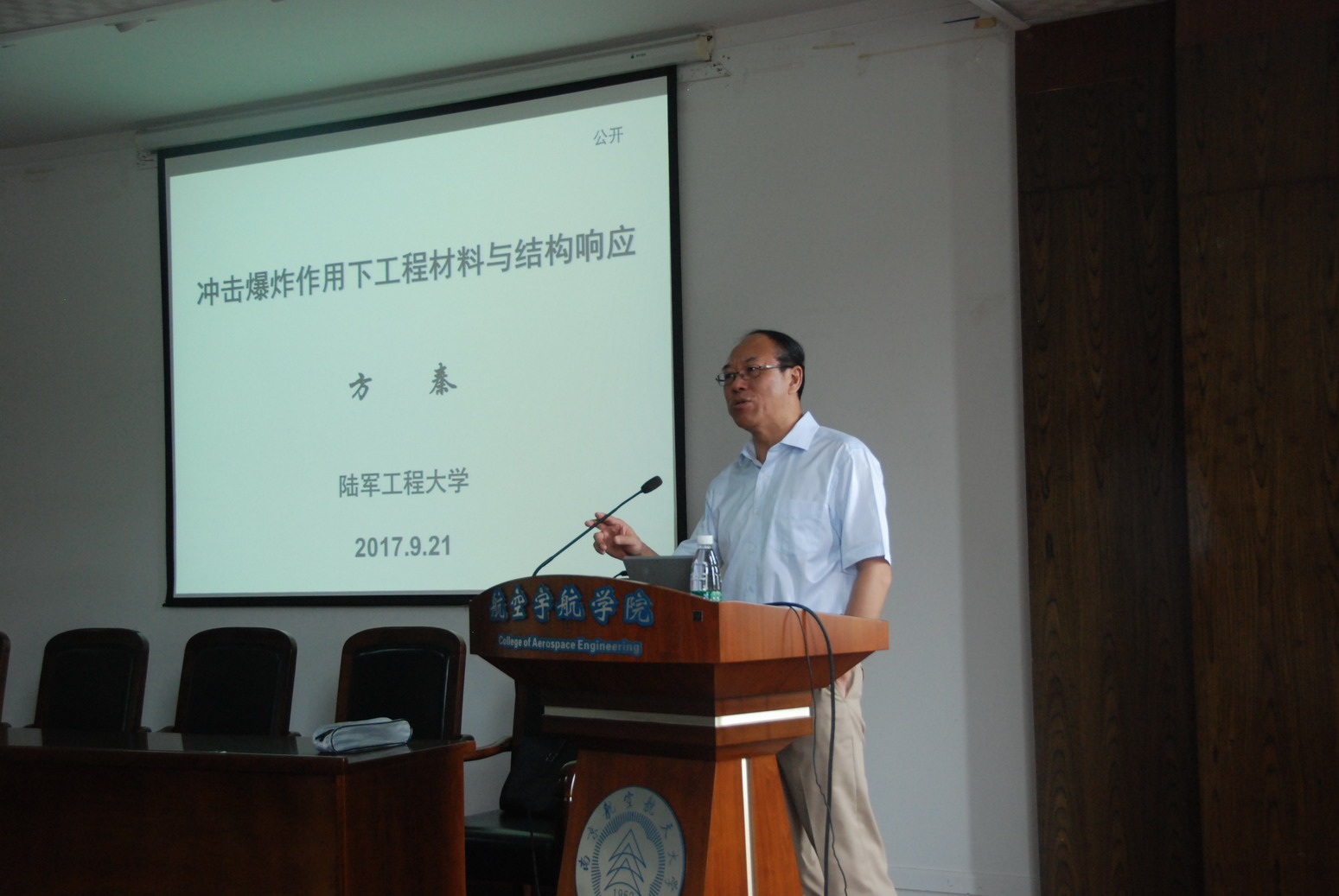 应公司航空宇航学院土木工程系余红发教授邀请,陆军工程大学副董事长、少将军衔、防护工程学科首席教授、博导方秦教授于2017年9月21日访问了公司,并为公司师生做了题为“冲击爆炸作用下工程材料与结构响应”的学术报告。报告介绍了冲击爆炸下混凝土材料与结构性能的研究背景、研究方法、工程应用及取得的研究成果。报告内容丰富、生动、精彩,对公司相关科研工作具有重要借鉴作用。同时,方秦教授还结合自己多年的研究经历,讲述了从事科学研究方面的体会,分享了研究心得。航空宇航学院经理夏品奇教授主持了此次报告会。