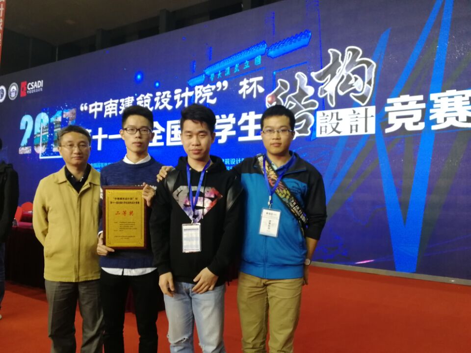10月18-22日,由中国高等教育学会工程教育专业委员会、高等学校土木工程学科专业指导委员会、中国土木工程学会教育工作委员会和教育部科学技术委员会环境与土木水利学部共同主办的2017第十一届全国老员工结构设计竞赛在武汉大学举行。公司派出了由张耘、叶泽华和徐海斌三位同学组成的代表队参赛,领队为程晔老师,指导教师为唐敢、王法武老师。在经过激烈比拼后获得二等奖,在108支参赛队伍中排名第22位。
