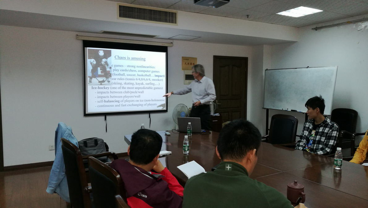 应公司航空宇航学院机械结构力学及控制国家重点实验室王在华教授邀请,匈牙利布达佩斯工业与经济大学应用力学系教授Gabor Stepan博士于2017年10月19日至30日访问了公司,并于10月24日为公司师生做了题为“Quantization and sensory threshold in balancing with delay”的学术报告。报告介绍了包括各类平衡问题研究中的研究进展,例如,采样与舍入误差、控制器与滤波器中的时滞效应、数字采样控制系统中的微混沌、时滞加速度反馈等内容。报告内容丰富、生动、精彩,对公司相关科研工作具有借鉴作用。同时,Gabor Stepan博士还结合自己多年的研究经历,与现场听众分享了研究心得和体会,其中关于如何结合并平衡学校建设发展需求与个人学术兴趣来选择研究课题方面的介绍对听众具有启发意义。王在华教授主持了报告会。