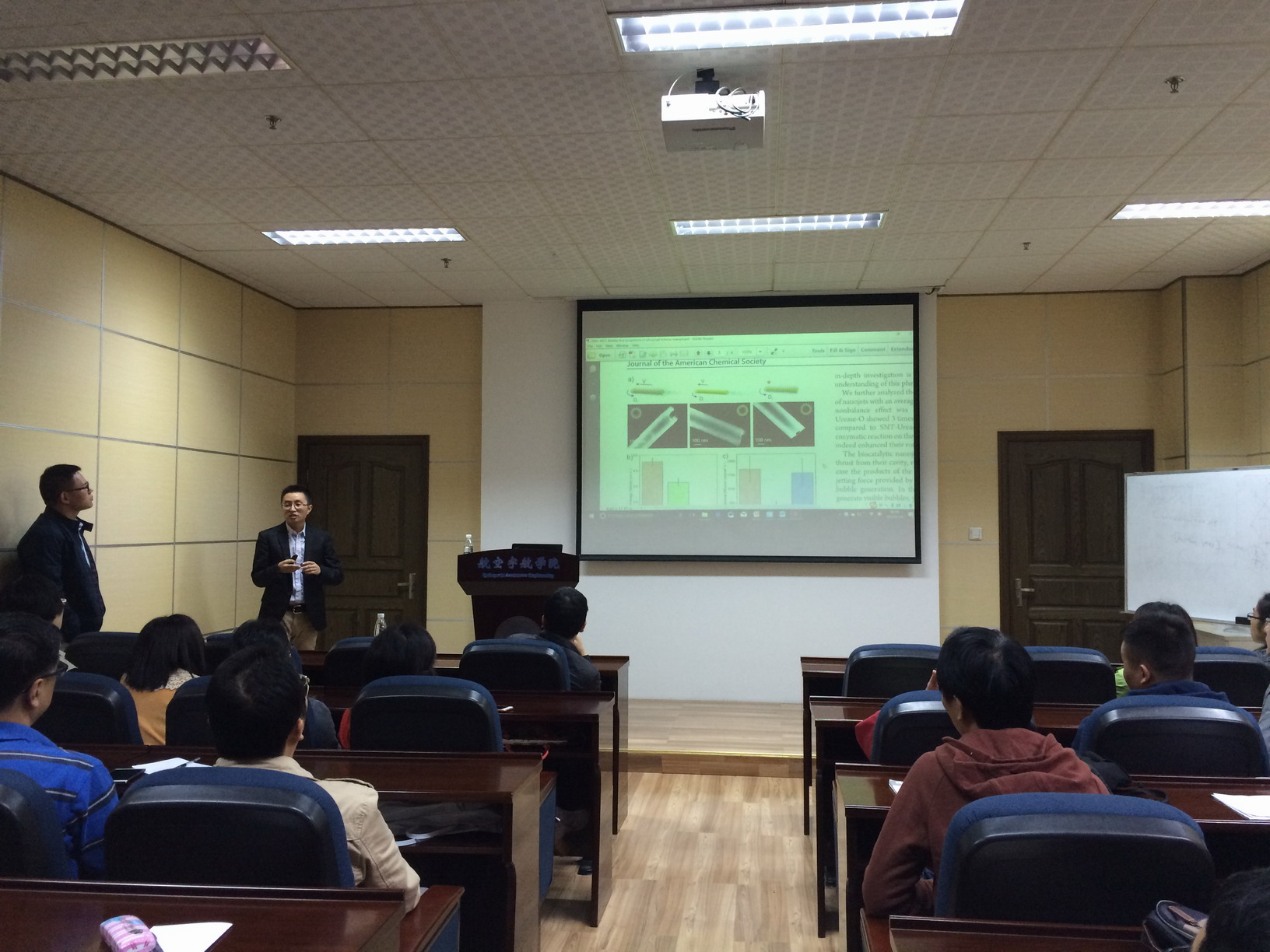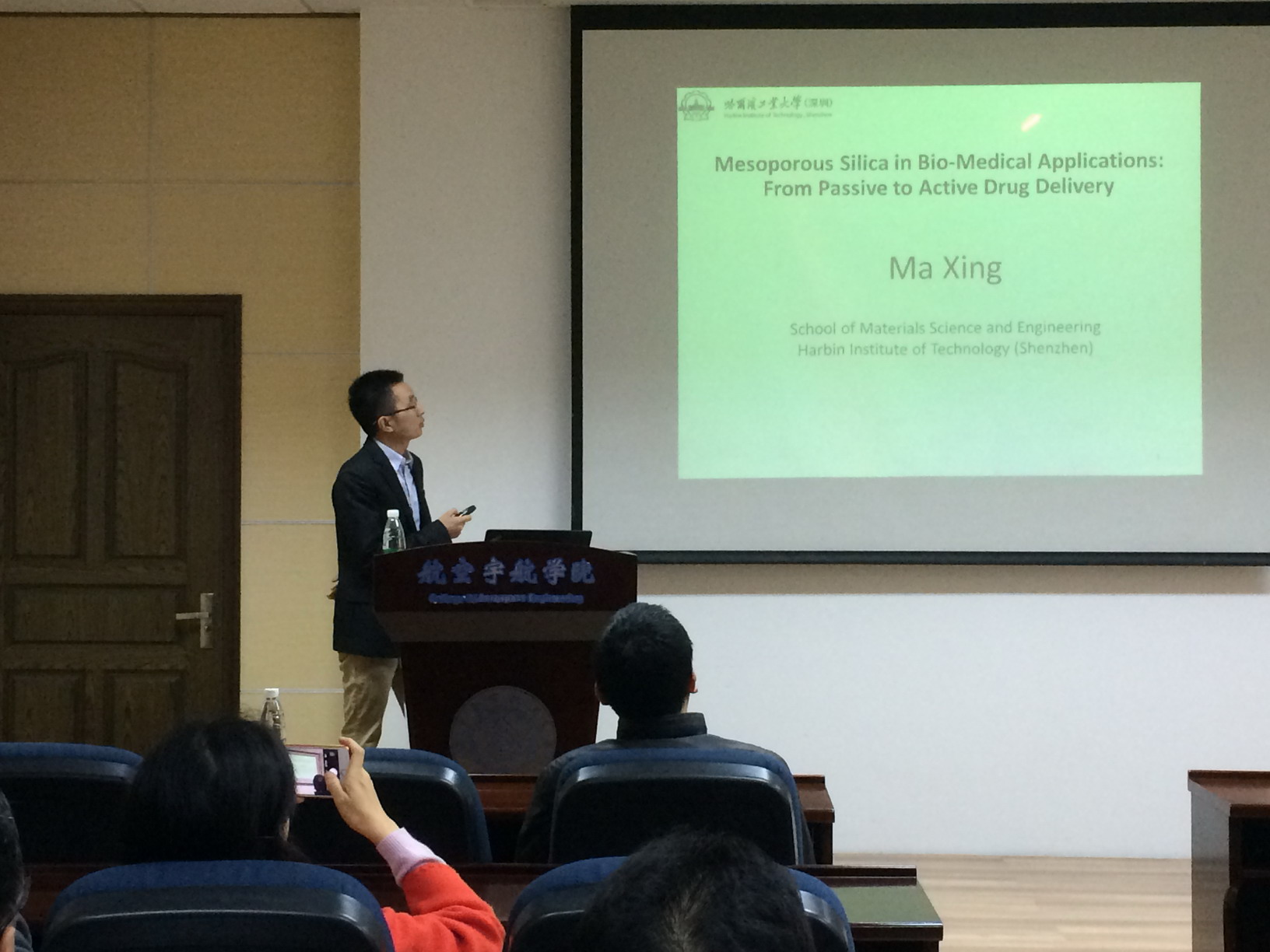 应公司航空宇航学院机械结构力学及控制国家重点实验室芦小龙副教授邀请,哈尔滨工业大学(深圳)材料科学与工程学院马星教授于2017年11月5日至7日访问了公司,并于11月6日为公司师生做了题为“介孔二氧化硅微纳米马达”的学术报告。报告介绍了介孔二氧化硅型生物材料在纳米马达中的应用。报告内容丰富、生动、精彩,对公司相关科研工作具有借鉴作用。同时,马星教授还结合自己多年的研究经历,与现场听众分享了自己长期在生物材料领域的研究心得和体会。芦小龙副教授主持了报告会。