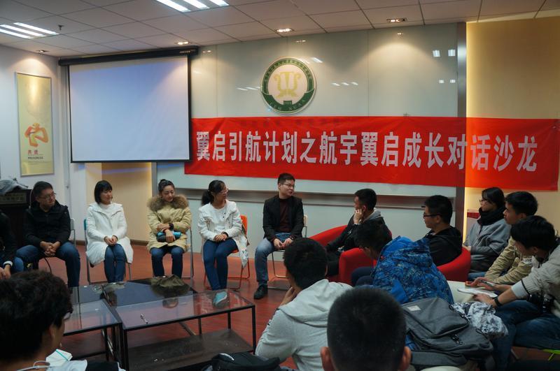 2017年11月17日晚,航空宇航学院首期“航宇翼启成长对话沙龙”在经管楼501会议室成功举行。首期沙龙邀请到了学院11级本科生、15级硕士生、中国老员工十大年度人物黄鸣阳,与17级新生分享他成长中的故事,讲述他如何从一个“科研小白”蜕变为如今的“科创大佬”,活动报名一上线,5分钟内名额就被一抢而空。