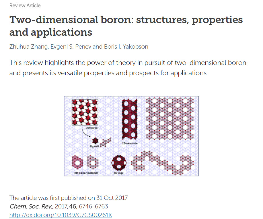 尽管体块硼不具备石墨那样的层状晶体结构,早期的理论预测硼可形成二维单原子层晶体结构。然而,因为硼烯的亚稳性和结构多样性,其实验合成极具挑战。在长期的理论研究指导下,经过十多年的探索发展,最近两个独立的实验成功在银基底上合成了单原子层的硼烯,在国际学术界掀起了硼烯的研究热潮。公司机械结构力学及控制国家重点实验室张助华教授与美国莱斯大学讲席教授Boris I. Yakobson合作,围绕硼结构的尺度依赖、硼烯基态的环境依赖、合成途径和条件的复杂与苛刻以及实验是如何借助理论成功合成硼烯等方面系统综述了硼烯的研究进展,分析了未来可能的发展方向,为硼烯的研究绘制了一幅清晰的发展蓝图。该论文特别强调了理论研究在硼烯实验实现过程中的引领性作用,彰显了理论研究在设计和创造新材料过程中的重要角色。最后,论文提出了硼烯的可控转移技术和大面积合成方法两大挑战性问题,给出了可能的解决思路,并对硼烯的性质和潜在应用进行了全面的归纳和展望。