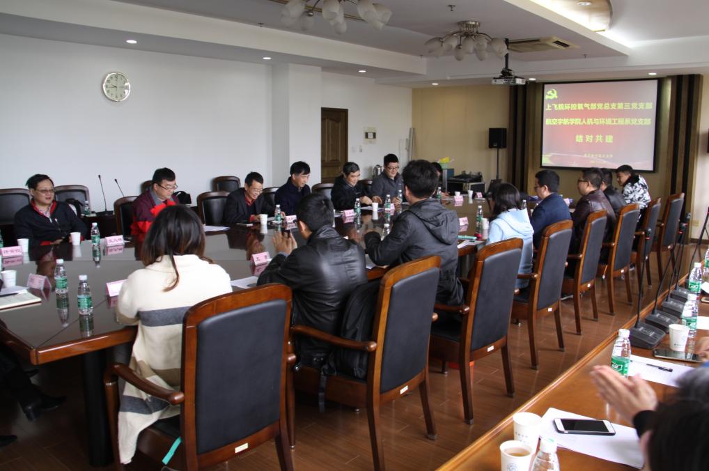 为了深入学习贯彻党的“十九大”会议精神,全面落实“两学一做”学习教育活动相关要求,进一步探索学院教工党支部党建工作新路子,11月18日,航空宇航学院人机与环境工程系党支部与中国商飞环控氧气部党总支第三党支部举行了支部共建签约启动仪式及首次交流活动,中国商飞环控氧气部部长、党总支书记、CR929项目机械系统高级项目经理李革萍总师、航空宇航公司党委书记孔垂谦、副经理蒋彦龙及双方共32名党员参加活动。