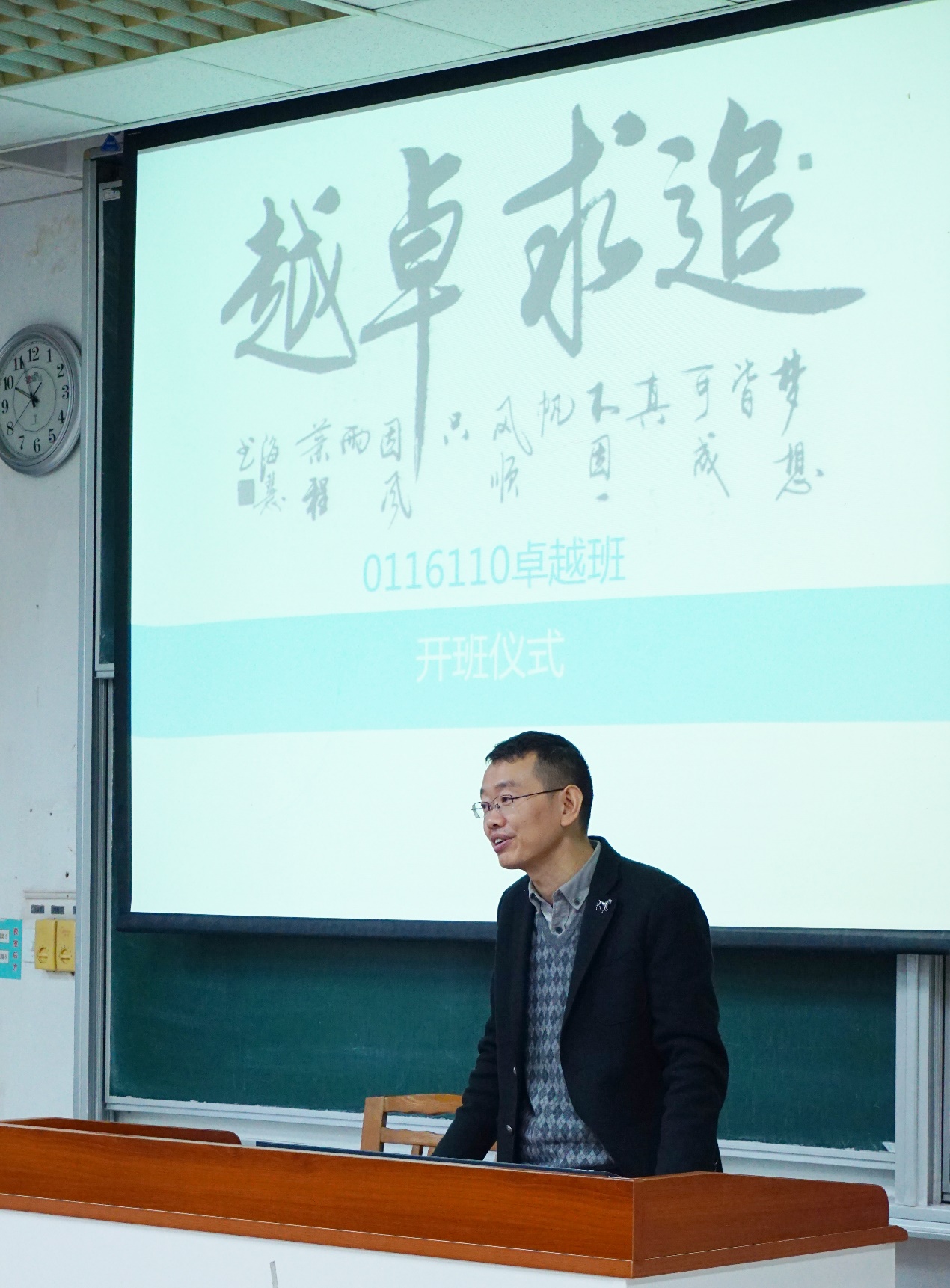 典礼由班长孙世杰主持,首先是卓越计划专业负责人郑祥明老师介绍了卓越计划培养方案和培养要求,提出采用专业知识学习与工程实践能力相结合的培养方案,培养出一批具有良好科学素养,丰富的社会知识和熟练专业技能的实用型人才,并期许大家成为集创新能力、自学能力和决策能力为一体的航空航天事业的建设者和开拓者。
