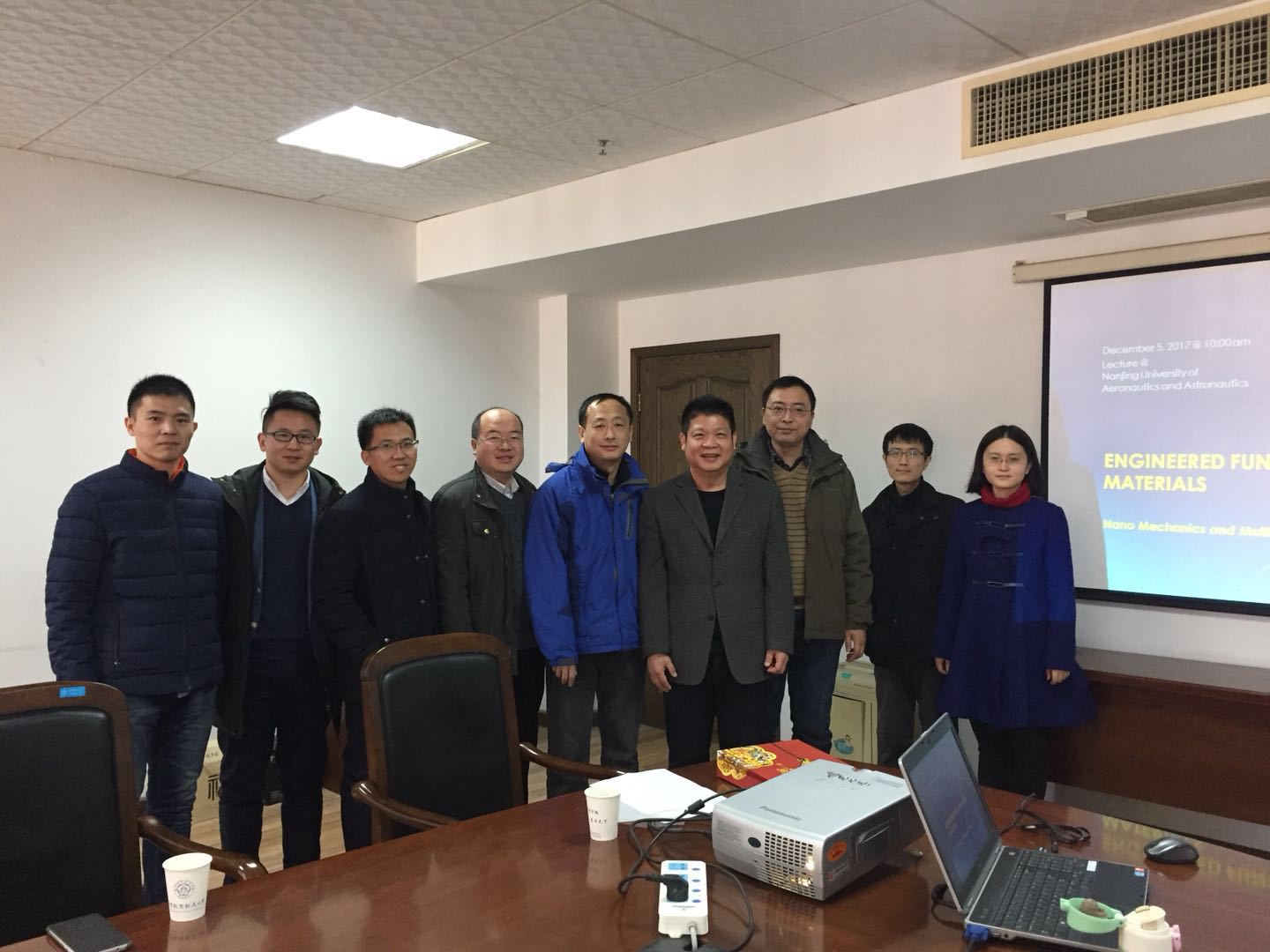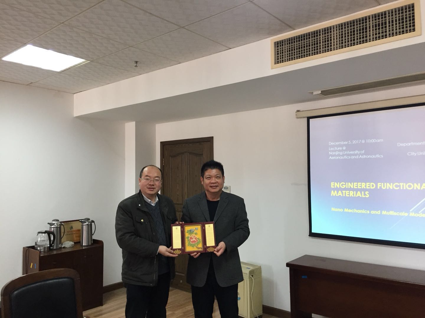 应公司航空宇航学院机械结构力学及控制国家重点实验室王立峰教授邀请,香港城市大学KM Liew教授于2017年12月2日至6日访问了公司,并于12月5日为公司师生做了题为“Engineered Functional Nano-Materials”的学术报告。报告介绍了碳纳米管、碳纳米锥及其复合材料等内容。同时,KM Liew博士还结合自己多年的研究经历,与现场听众分享了研究心得和体会,与现场听众分享了纳尺度材料结构力学领域的研究心得和体会。王立峰教授主持了报告会。