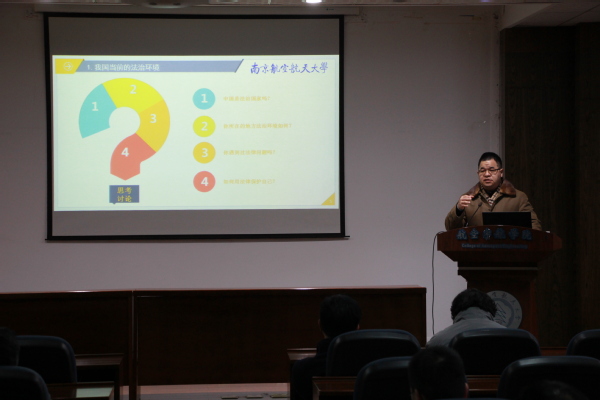根据公司党委统一部署,1月4日,公司党的十九大精神宣讲团成员、人文与社会科学学院经理王建文教授来到航空宇航学院,以“法治时代如何保护自己”为主题为百余名教师作宣讲报告,航空宇航学院全体院领导参加报告会,公司党委书记孔垂谦主持报告会。