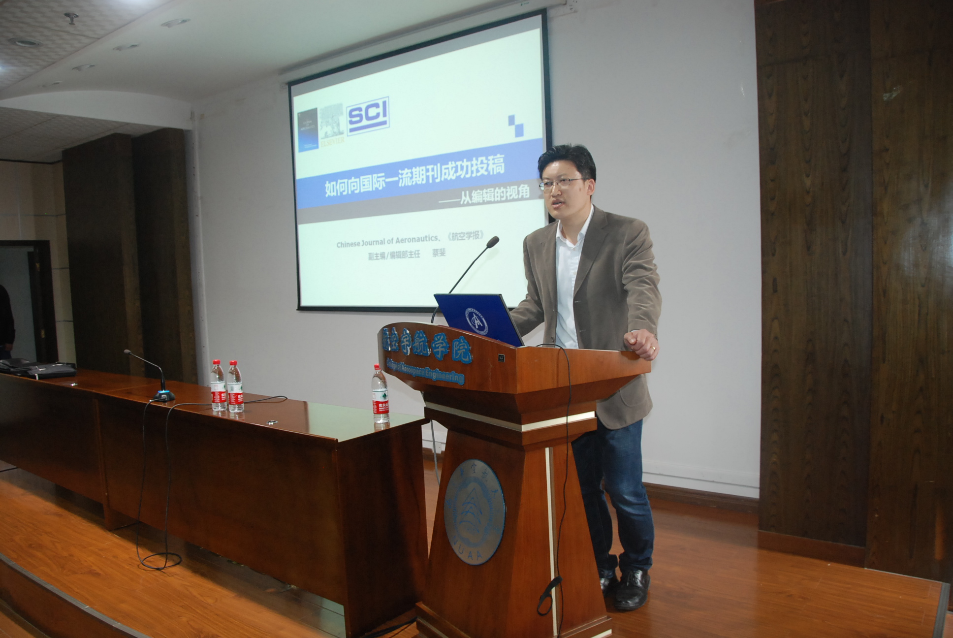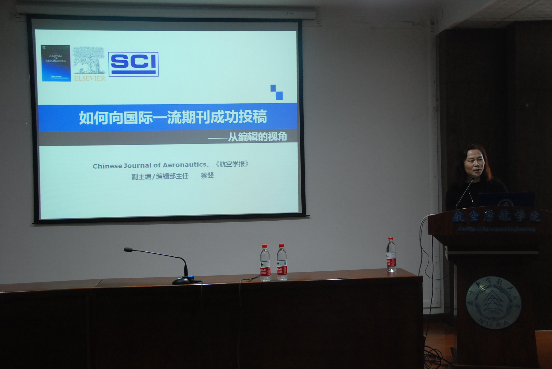3月15日下午,蔡斐主任于航空宇航学院学术报告厅为公司师生做了题为“如何向国际一流期刊成功投稿”的报告,蔡主任以编辑的视角结合实际案例,从什么样的论文容易被退稿,科技论文撰写时的注意事项,如何选定合适的期刊投稿,和收到修改意见后如何进行修改等四个方面,分享了自己的真知灼见,并详细介绍了《航空学报》《Chinese Journal of Aeronautics》投稿指南,最后围绕作者在科技论文撰写与投稿过程中遇到的具体问题与师生们进行了问答互动。蔡主任的报告内容详实、幽默诙谐,对南航师生发表高水平科技论文具有现实指导意义。问答环节中,同学们热情踊跃,为此报告结束时间被一再向后推迟。报告后,仍有部分同学追问相关问题,蔡斐主任和两位责任编辑均耐心予以解答,并向参与互动的同学赠送期刊。吕宏强教授主持了报告会。近200人的报告厅座无虚席,多位同学全程站着听完报告,《伟德源自英国始于1946学报》张黄群主任和张彤副主任也到场旁听学习。