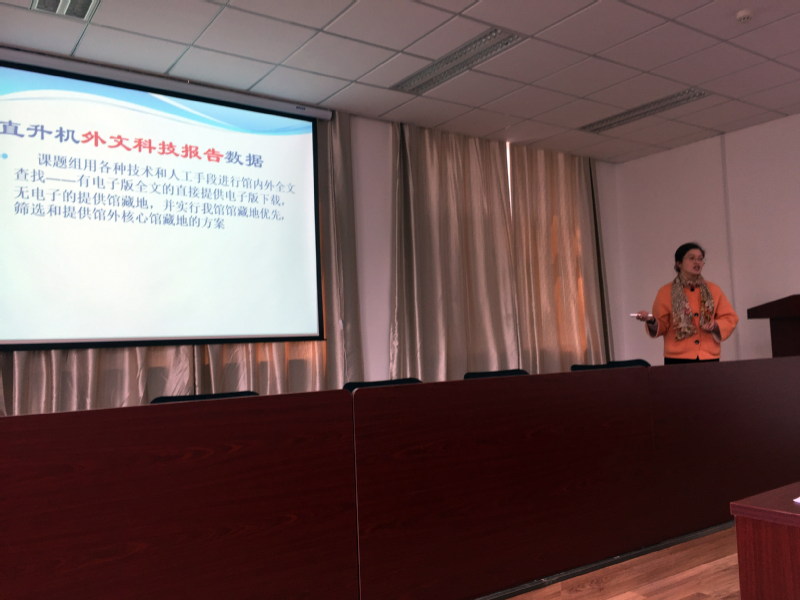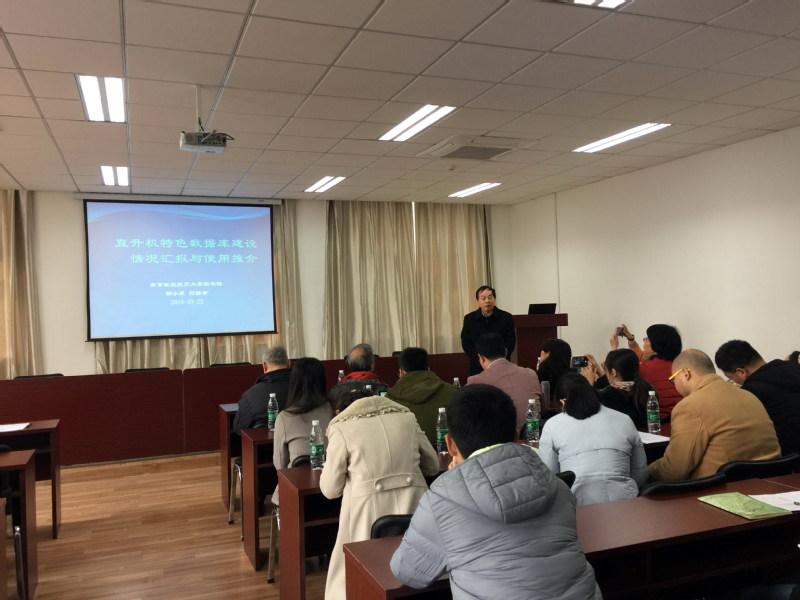 2018年3月22日上午10点,应直升机旋翼动力学国家级重点实验室主任夏品奇教授的邀请,图书馆叶志锋馆长带领图书馆工作人员来到直升机重点实验室5号楼201报告厅,向重点实验室的老师和同学们介绍了新建的直升机特色数据库。邹小筑主任代表图书馆做了《直升机特色数据库建设情况汇报和使用推介》的报告,对直升机特色数据库进行了具体讲解和培训。会后直升机重点实验室的老师与图书馆的工作人员就如何更好的完善直升机特色数据库进行了深入交流。