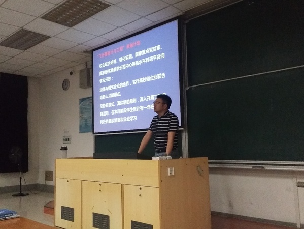 5月21日晚19点,航空宇航学院在江宁将军路校区6301召开了2017级飞行器设计与工程“卓越工程师班”招生宣讲会。航空宇航学院14级卓越工程师班班主任陆洋老师,航空宇航学院教学办主任胡挺,航空宇航学院17级辅导员宗思雨,以及航空宇航学院14级卓越工程师班班长刘立桢同学参加了招生宣讲会。