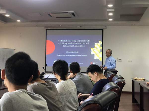 应公司航空宇航学院机械结构力学及控制国家重点实验室高存法教授的邀请,来自澳大利亚皇家墨尔本理工大学的副教授Akbar Khatibi携同他的博士生赵静雯于2018年6月2日至6月16日访问了公司,并于6月7日早上分别为公司师生做了题为“Multifunctional Composite Materials Exhibiting Mechanical and Thermal Management Capabilities”、“Design and characterization of acoustic metamaterials in water-like media”的学术报告。