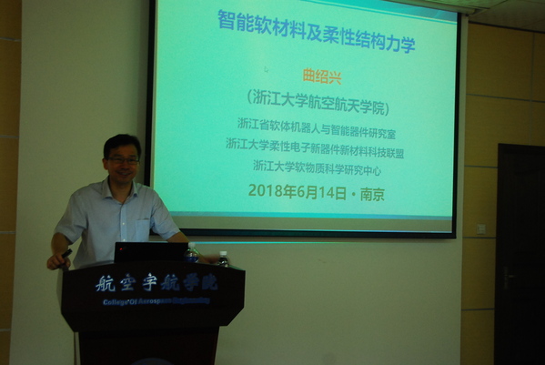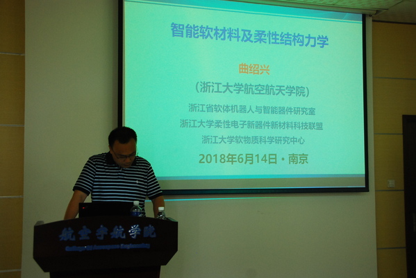 应公司航空宇航学院机械结构力学及控制国家重点实验室高存法教授的邀请,浙江大学航空航天学院副经理、国家杰出青年科学基金获得者曲绍兴教授于2018年6月13至14日访问了公司,并做了题为“智能软材料及柔性结构力学”的学术报告。沈星教授主持了报告会。