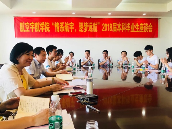 6月15日上午,航空宇航学院“情系航宇,逐梦远航”2018届本科毕业生代表座谈会在18号楼511会议室召开。经理夏品奇、党委书记冯绍红、副经理蒋彦龙、党委副书记许静,各系所负责人、辅导员、教学办老师以及毕业生代表们出席会议参加了此次座谈。