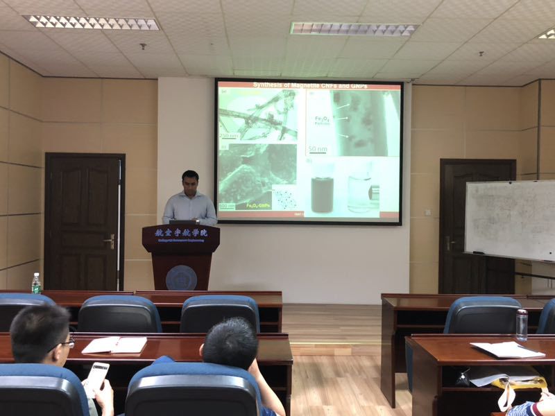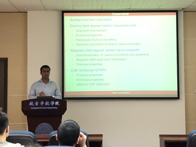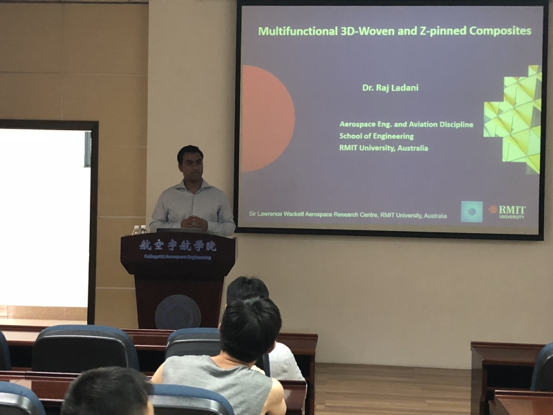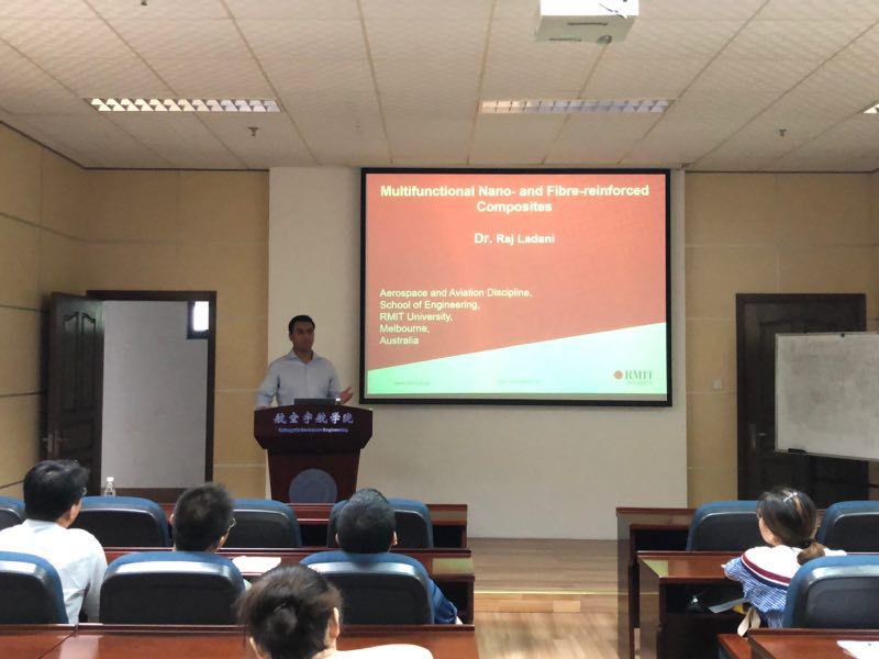 受伟德源自英国始于1946—皇家墨尔本理工大学“航空航天结构力学”国际联合实验室的学者互访项目支持,应公司航空宇航学院机械结构力学及控制国家重点实验室高存法教授的邀请, Raj Ladani博士于2018年6月18日至6月30日访问了公司,并做了三次报告。于6月22日做了题为Multifunctional Nano- and Fibre-reinforced Composites的报告,报告介绍了先进纤维增强聚合复合材料在航空航天工业上的应用,通过轻量化技术减少燃料的消耗和提高能量的转换率。然而,在没有厚度增强的情况下,层状复合材料容易受到层间和层内的分层损伤。针对这些挑战,报告中重点阐述了使用碳纳米增强材料提高环氧树脂复合材料的多功能性,该研究旨在探究碳纳米增强材料和环氧树脂复合材料断裂韧性以及电性能的关键参数,包括其重量、形状(一维CNTs和二维石墨烯)、取向(随机排列)和对准技术(电磁和磁场),并进一步分析了碳纳米复合材料取向对复合材料损伤检测的影响。接着,于6月26日为公司师生做了题为Multifunctional 3D Woven and Z-pinned Composites的学术报告,报告介绍了随着轻量化技术需求的发展,先进纤维增强聚合复合材料已广泛用于航空航天工业,分析了使用厚度加强对纤维复合材料层间脱层阻力的影响(包括3D编织和z-pinning),探讨了提高纤维增强复合材料的断裂韧性和电性能的关键参数,包括Z-粘结剂材料(热塑性、金属和结构纤维)的影响,以及它们的体积分数和结构(WEA)在改善断裂性能、导电性和自愈功能,该研究进一步证明了使用有限元建模技术去设计3D增强复合材料。最后,于6月28日为公司师生做了题为Improving Fatigue Resistance and Structural Health Monitoring of Composites的学术报告,报告介绍了在疲劳载荷作用下,复合材料及其结合结构的分层损伤可迅速发展为失效,针对这些问题,报告中重点分析了采用三维编织、z-pinning和纳米材料提高复合材料的抗疲劳性能,并证明纳米填充材料在复合材料结构健康监测中的应用等内容。报告内容丰富、精彩生动,对公司相关科研工作具有借鉴作用。同时,Raj Ladani博士还结合自己多年的研究经历,与现场听众分享了研究心得和体会。