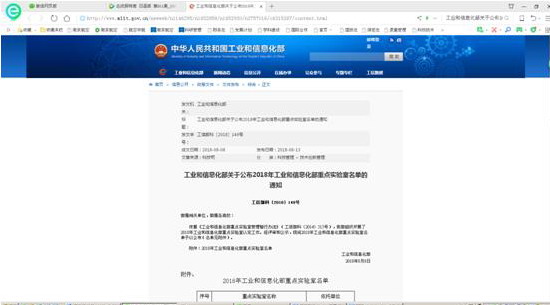 依据《工业和信息化部重点实验室管理暂行办法》(工信部科〔2014〕515号),我部组织开展了2018年工业和信息化部重点实验室认定工作。经评审和公示,现将2018年工业和信息化部重点实验室名单予以公布(名单见附件)。