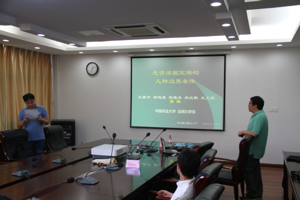 应公司航空宇航学院机械结构力学及控制国家重点实验室高存法教授邀请,中国农业大学应用力学系高阳教授于2018年8月22日至24日访问了公司。高阳教授于8月22日-24日受邀参加了在公司举办的“智能材料力学与结构国际研讨会”,并于8月24日为公司师生做了题为“几种悬臂梁理论的位移边界条件”的学术报告。报告中,高阳教授利用新的纯位移边界条件,即最小二乘法确定位移边值问题,研究悬臂梁承受3种载荷的情况:自由端受切向力、上表面受均布载荷和线性载荷,最后通过与有限元计算结果进行比较,说明采用最小二乘法确定边界条件大大优于传统的确定方法,从而给出了几种形式简单的边界条件。高阳教授还分享了他在准晶材料等研究领域的心得和体会。报告内容丰富、生动、非常精彩,对公司相关科研工作起到重要的借鉴和启发作用。宋豪鹏副教授主持了报告会。