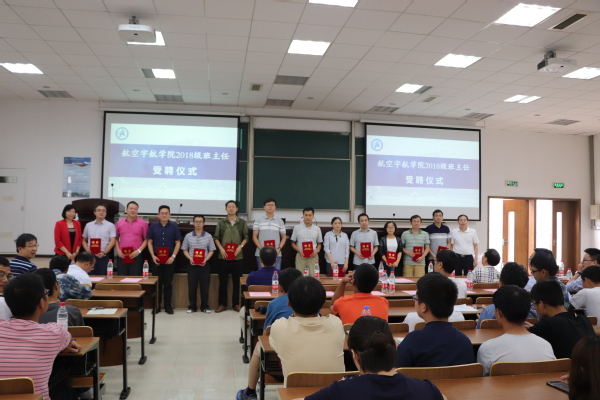副书记许静介绍了航空宇航学院班主任、优秀生导师制度的实施情况,并宣读2018级班主任聘任名单。经理夏品奇与党委书记冯绍红为班主任颁发聘书。