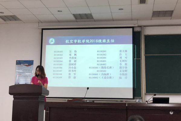 航空宇航学院2018级本科新生见面会于9月21日下午14:00在将军路校区D1213教室举行。航空宇航学院经理夏品奇,党委书记冯绍红,副经理蒋彦龙、钱征华,党委副书记许静,团委书记韩楚,各系所负责人出席大会。航空宇航学院2018级班主任以及全体同学参加了大会,大会由公司党委副书记许静主持。