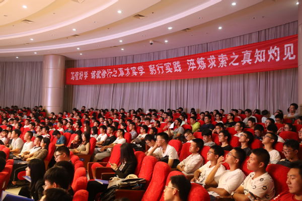 9月26日晚,航空宇航学院2018年“吉尼斯之夜”暑期社会实践成果分享会在将军路校区一号楼四楼报告厅成功落下帷幕。出席本次分享会的嘉宾有校团委副书记丁琛、航空宇航公司党委副书记许静、校团委吕晶淼、航空宇航学院团委书记韩楚、各年级辅导员。30名大众评审及400余名大一新生亦参加了本次活动。