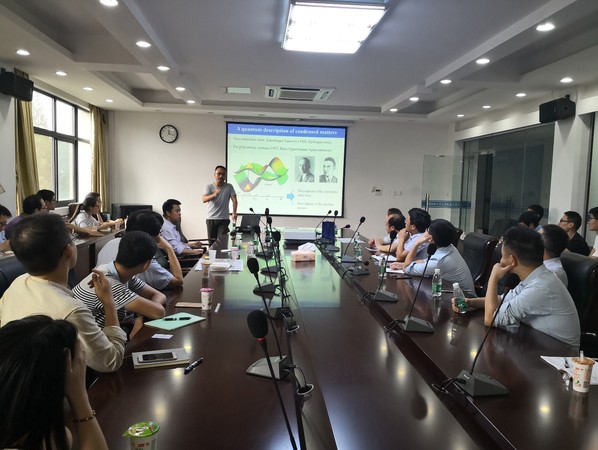 李新征教授作了题为“凝聚态体系中一些由核量子效应诱发的新物性”的学术报告。报告介绍了理论计算领域近年来对电子的量子描述已很精确而对原子核的量子描述相对缺乏的现状,重点介绍了基于第一性原理计算的路径积分的分子动力学方法,及其在实际体系物性模拟中的应用,如核量子效应对氢键系统结构的影响、铁电-顺电相变问题,还介绍了一些与北京大学江颖研究组共同完成的关于水在固体表面行为的研究。