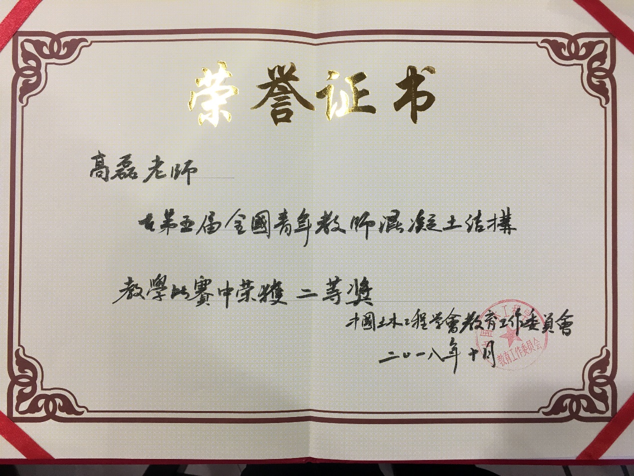 第五届全国青年教师混凝土结构教学比赛于2018年10月21日在古城西安落下帷幕。来自同济大学、哈尔滨工业大学、福州大学、河海大学、国防科技大学、中国矿业大学、陆军工程大学、郑州大学和长安大学等近40所高校的40余青年教师参加了比赛。经过激烈争夺,公司土木工程系高磊博士以总分第二荣获二等奖。
