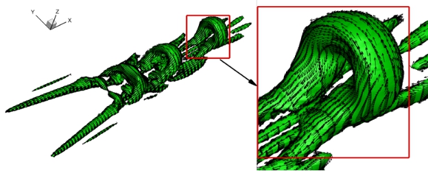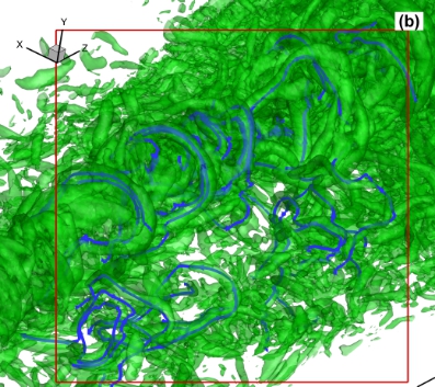 田书玲老师文章从分析流体微团转动运动出发,提出了局部流体转动轴的概念,并给出了当局部流体转轴与局部坐标轴平行时速度梯度张量所满足的条件;在确定局部流体转动轴的基础上,根据垂直于转轴平面内速度梯度张量定义了流体转动角速度大小;最后,利用转轴方向和转到角速度大小定义了一个新的矢量。文章通过不同算例对该矢量在漩涡结构识别能力上进行了考核验证,表明它不仅能够地识别出复杂涡结构,而且能精确给出涡结构矢量线(不同于用涡量定义的涡线),该方法对研究涡结构内流动参数变化规律、追踪流场中旋涡结构的生成、发展演化过程以及研究湍流生成和维持机理等具有潜在意义。