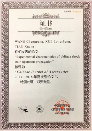 该成果基于课题组长期的风洞试验数据分析和实验观察逐步发展而来,包含初期的定性实验现象分析、非定常定量数据整理、热力学与流体结构耦合建模、定量参数引进等。自2008年以来,相关工作得到了4项国家自然科学基金的资助,其中包含1项国家自然科学基金重大研究计划、2项面上项目和1项青年基金,另外还得到“十二五”863项目的部分资助以及江苏省高校重点学科项目的资助。本文工作是在“Experimental characteristics of oblique shock train upstream propagation, 2017 Chin. J. Aeronautics. 30, 663–676.”基础上的延续,同时这篇前期试验分析文章近日被评为“CJA 2013-2018年高被引论文”。