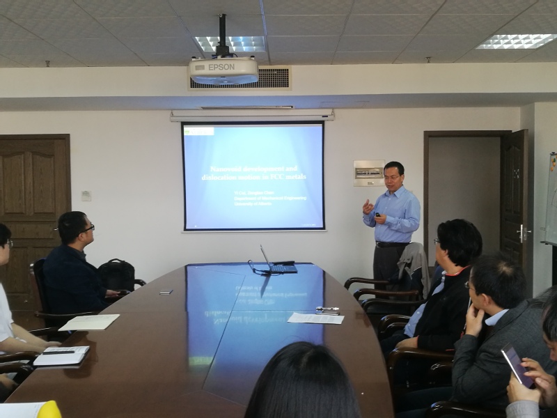 应公司机械结构力学及控制国家重点实验室高存法教授的邀请,加拿大阿尔伯塔大学机械系陈增涛教授于2018年11月1日-2日访问了公司,并于11月2日做了题为“Nanovoid Development and Dislocation Motion in FCC Metals”的学术报告。