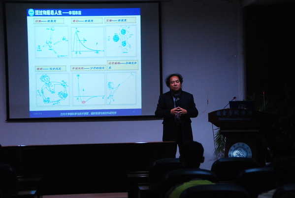 报告贯穿文理的界限,用“大小、多少、轻重、缓急、得失”这五对矛盾将人生和物理关联起来,用“度”(质心)作为解决上述矛盾的钥匙,用“进、退”来实现“度”的调整。报告将利用物理学的原理观察社会,剖析人生,解读爱情与婚姻,认识工作与学习,向人们展示了一幅清晰的人生画卷。用抛物线刻画人生轨迹,用原子模型描述人际关系,用导电性理解人与人的交流,用心与心的碰撞比喻恋爱,用分子模型解读家庭,用核聚变类比结婚,用核衰变表示感情的衰退,核裂变比喻家庭破裂…。让缺少物理知识的人,褪去对物理学的神秘感,感受物理学的美;让拥有物理学基础知识的人,学会运用物理学原理正确看待人生,乐观、豁达地面对生活。报告会由高存法教授主持。报告内容丰富、精彩生动;会后,王铁山教授与公司师生做了深入的交流和探讨及补充和解答。