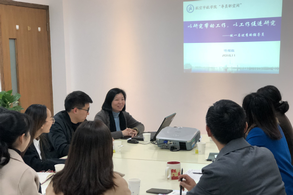 为进一步提升学院思政工作质量和辅导员队伍建设水平,航空宇航学院推出辅导员培训工作坊——“导员职空间”。11月30日,邀请到航空宇航公司党委书记冯绍红作为首期嘉宾开讲,党委副书记许静携全体辅导员参加培训,共同聆听来自“老学工”前辈的知心话语和智慧点拨。
