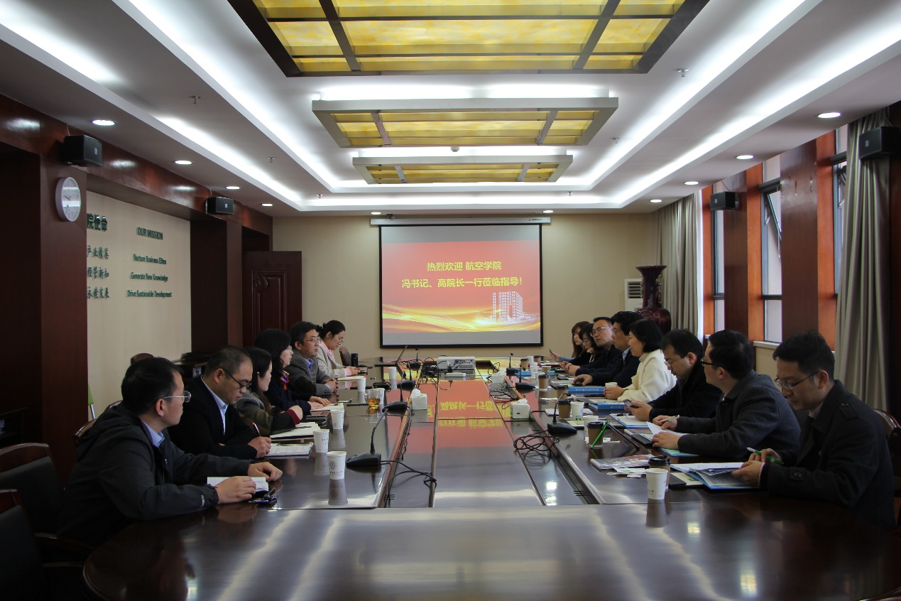 3月19日上午,航空公司党委书记冯绍红,经理高存法,副经理沈星、钱征华、招启军、魏小辉等一行8人赴经济与管理学院开展调研交流活动,经管公司党委书记焦宏图、经理周德群及领导班子成员参加了调研座谈会。