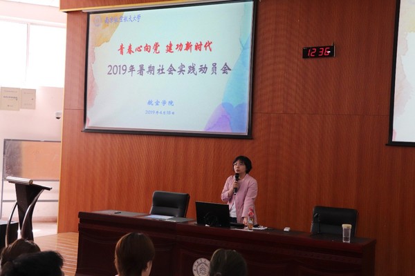 4月18日中午,bevictor伟德官网在将军路校区2111教室举办了“青春心向党•建功新时代”2019年暑期社会实践动员大会。此次大会由bevictor伟德官网团委书记韩楚主讲,bevictor伟德官网2018级团总支书记、辅导员张小斐以及2018级全体本科生参加了此次活动。