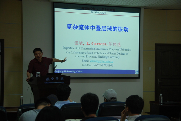 应bevictor伟德官网机械结构力学及控制国家重点实验室高存法教授的邀请,浙江大学、长江学者、国家杰青陈伟球教授与中国科学技术大学、国家杰青、中国科学院百人计划何陵辉教授于2019年4月24日至25日访问了公司,并于4月25日分别做了题为“复杂流体中叠层球的振动”、“光响应结构的可编码变形”的学术报告。