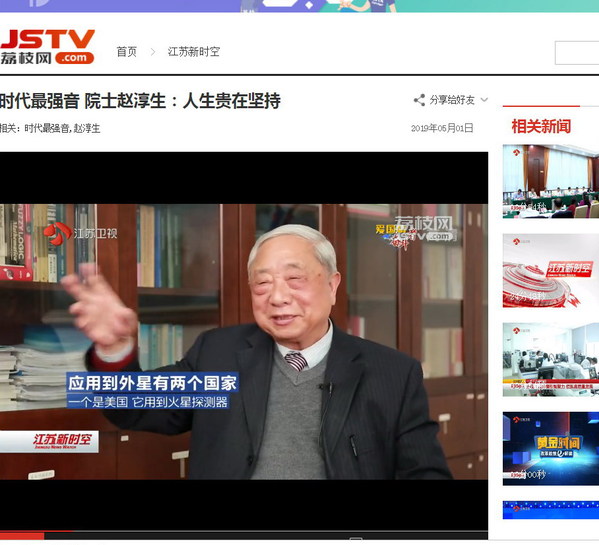 五一劳动节前夕,江苏广播电视总台和江苏省总工会共同推出特别策划“时代最强音”,5月1日晚,江苏卫视《新闻眼》和《江苏新时空》两档栏目,连续报道公司赵淳生院士研制超声电机的典型事迹,现转发相关报道: