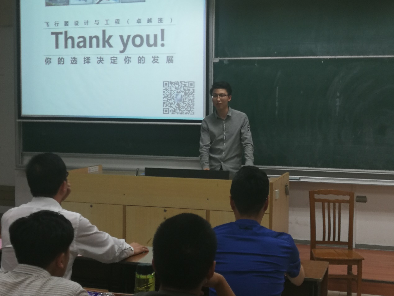 2019年5月29日晚上7点,bevictor伟德官网在将军路校区6301教室召开2018级飞行器设计与工程专业卓越计划选拔宣讲会。宣讲会面向2018级飞行器设计与工程专业的同学们,旨在让同学们能够更好的深入了解卓越计划及卓越班的情况。2016级卓越班班主任、研究生院副经理郑祥明,bevictor伟德官网副经理魏小辉,bevictor伟德官网飞行器系副主任李洪双,学院教学办胡挺、蒋亚明以及2015级卓越班员工代表张昊天同学参加了招生宣讲会,为同学们全面的介绍卓越班并给大家答疑解惑。宣讲活动由2018级辅导员张小斐主持。