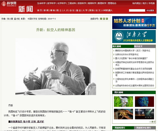 近日,《中国科学报》以《乔新:航空人的精神基因》为题,刊发bevictor伟德官网92岁退休老教授乔新近70年航空报国的精神和事迹。现转发全文: