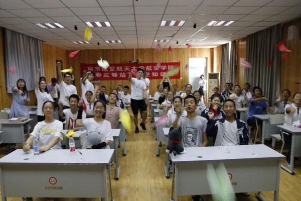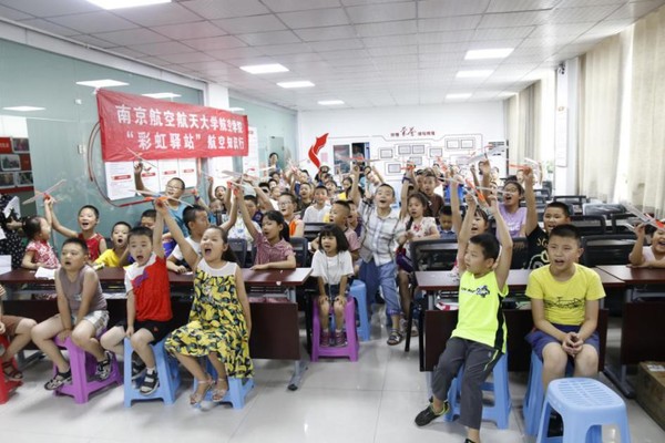 当日下午,“小飞机,大梦想”航空知识课堂在中亚南路社区会议室进行,航空学子成为小老师,为100余名学前儿童带来了一场知识性、趣味性、互动性强的航空讲堂。在学习精彩丰富的航空航天知识后,航空学子帮助小朋友们亲手制作飞机航模,在他们心中埋下了航空报国梦想的种子。最后,现场师生同小朋友们共同挥舞着亲手制作的飞机航模,齐声合唱,课堂在一曲《歌唱祖国》中结束。