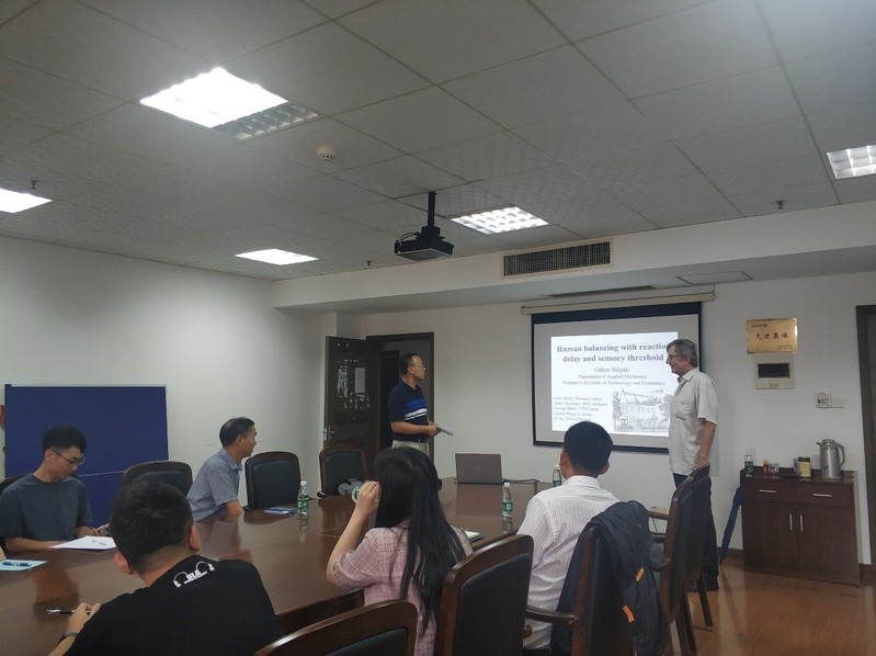 应公司机械结构力学及控制国家重点实验室王在华教授邀请,匈牙利布达佩斯工业与经济大学应用力学系Gabor Stepan教授于2019年8月30日至9月13日访问公司,并于9月2日做了题为“Human balancing with reaction delay and sensory threshold”的学术报告。报告主要介绍了考虑反应时滞和感应死区时人体自平衡动力学的相关研究成果。报告内容丰富、精彩生动,对公司相关科研工作具有借鉴作用。报告会由沈星教授主持。
