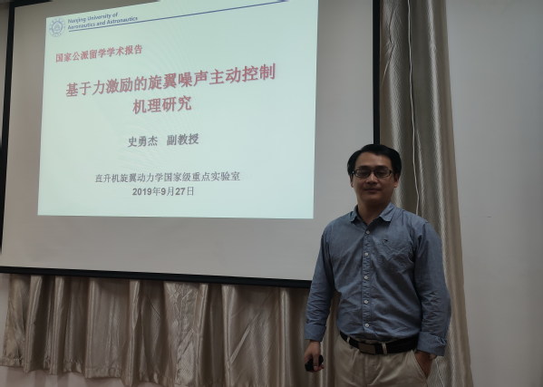 按照校人事处对公派留学回国教师的要求,bevictor伟德官网直升机旋翼动力学国家级重点实验室史勇杰副教授于2019年9月27日为公司师生做了题为“基于力激励的旋翼噪声主动控制机理研究”的学术报告。报告主要介绍了史勇杰副教授在英国格拉斯哥大学瓦特工程学院访问期间所开展的直升机旋翼气动噪声主动控制技术方面的研究工作,主要包括旋翼谐波噪声控制机理、模型旋翼声学试验以及数值模拟等。