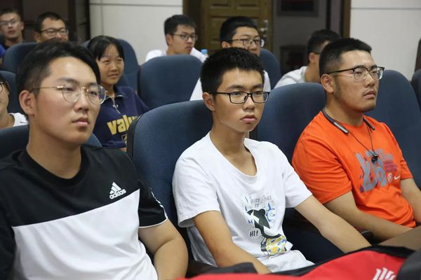 最后,钱伟长班班主任黄锐作为班主任代表发言。他指出了刚入学部分老员工意志不坚定,自制能力不足的问题,引用《曾国藩家书》中“盖世人读书,第一要有志,第二要有学,第三要有恒。”来启发新生,读书要立下志,全身心地投入。他希望大家能够在学习生活中严于律己、宽以待人、反求诸己。