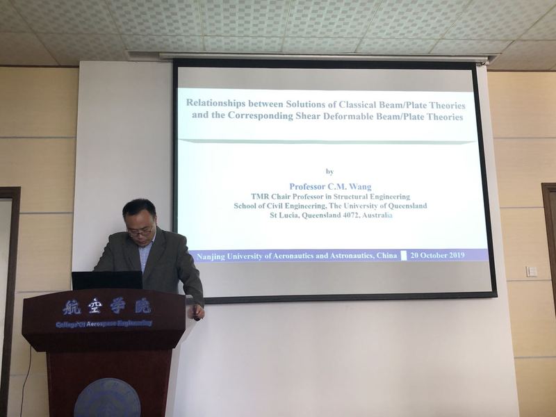 应公司航空宇航学院机械结构力学及控制国家重点实验室高存法教授的邀请,昆士兰大学Chien Ming Wang教授于2019年10月19日-2019年10月22日访问公司,并于10月20日做了题为Relationships between Solutions of Classical Beam/Plate Theories and the Corresponding Shear Deformable Beam/Plate Theories的学术报告,沈星教授主持了报告。