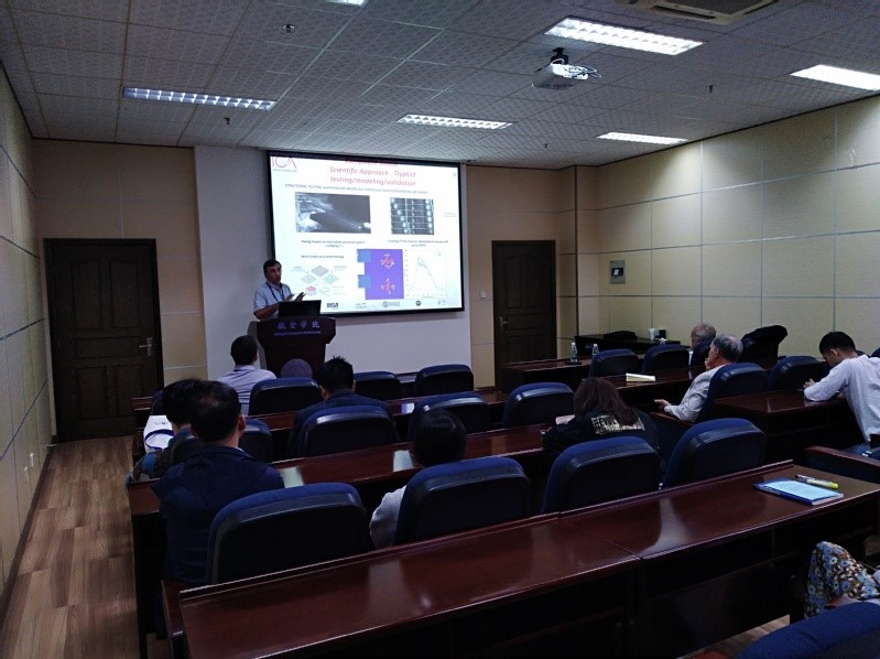 应bevictor伟德官网机械结构力学及控制国家重点实验室高存法教授的邀请,法国图卢兹大学Bruno Castanié教授于2019年10月20日-2019年10月23日访问公司,并于10月22日下午做了题为Discrete Modeling Strategies for Aeronautic Composite Structures: from Failure Scenario to Certification的学术报告。Castanié教授的报告介绍了航空复合结构的设计方法、离散建模手段以及实验测试技术。报告内容丰富、精彩生动,对公司相关科研工作具有借鉴作用。同时,Bruno Castanié教授还结合自己多年的研究经历,与现场听众分享了研究心得和体会。bevictor伟德官网沈星教授主持了报告会。