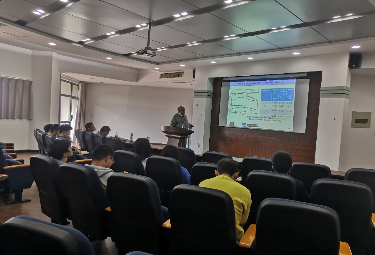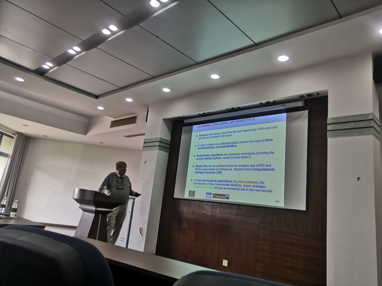 应bevictor伟德官网空气动力学系唐智礼教授邀请,法国达索飞机公司数值分析与理论空气动力学部主任、达索公司前瞻性研究中心主任、工程数值方法国际研究中心高级教授Jacques Periaux于11月8日上午来C12-619做题目为“Hybridized Evolutionary Optimization with Game Strategies for Multi Objective Multi Disciplinary Design . Applications to Aeronautics”的学术报告。报告首先介绍了近年来多目标优化算法的发展与应用,总结了与传统优化方法相比其优势与不足;其次对比了常见的多目标优化方法如Pareto、Nash和Stackelberg games的性能;最后介绍了这三种多目标优化方法在实际工程中的应用。报告内容丰富、精彩生动,拓宽了参加讲座员工的科研视野。同时,教授还结合自己多年的研究经历,与现场听众分享了人工智能与流体力学相结合的研究心得和体会。唐智礼教授主持了报告会。
