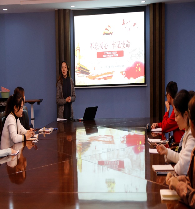 参观结束后,党支部书记张小斐于A18-511会议室为支部党员讲授“不忘初心,牢记使命”专题党课,张小斐从共产党人的“初心”和“使命”谈起,结合主题教育的总要求和总目标,以当代青年学子实际事例为载体,讲述当代老员工如何做到“不忘初心,牢记使命”,牢记为中国人民谋幸福和为中华民族谋复兴的初心和使命,充分在同学中发挥先锋模范作用,积极为实现国家富强,民族振兴,人民幸福而有所作为,攻坚克难。