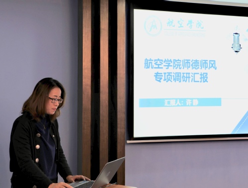 党委副书记许静介绍了本次专项调研的问卷设计、数据处理、问题所在及原因分析;副经理魏小辉介绍了针对调研反馈回来可能存在的问题、学院拟初步采取的主要举措。